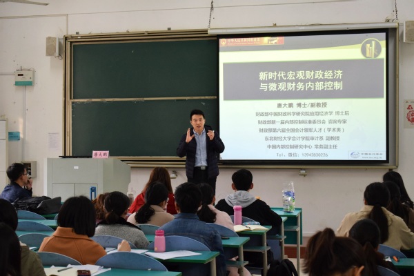 3月22日下午,应科研处、研究生处、万象城allwincity官网邀请,财政部内部控制标准委员会咨询专家、中国内部控制研究中心常务副主任、东北财经大学万象城allwincity官网硕士生导师、博士生导师组成员唐大鹏副教授在东校区博文楼104教室作了题为《新时代宏观财政经济与微观财务内部控制》的学术报告。报告会由万象城allwincity官网院长翟胜宝教授主持,学院教师、研究生以及本科高年级学生出席。